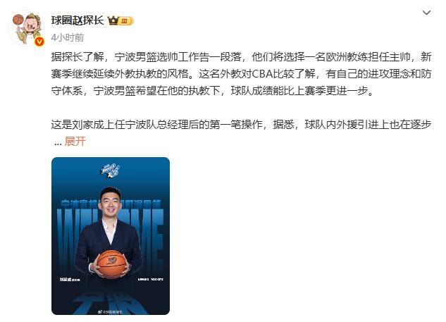 据媒体人球圈赵探长消息,宁波男篮将会选择一名欧洲教练担任主教练。