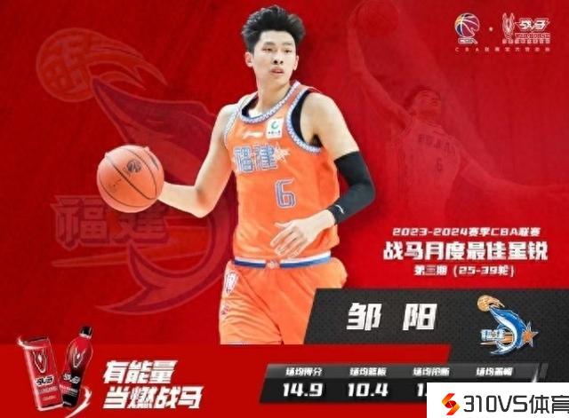 > 场均14.9分10.4板!CBA官方:邹阳取得第3期月度最佳星锐球员