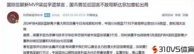 那么,为何梁晨宇会被禁赛呢?“陕西省篮球协会”的账号也发布了缘由:“据悉,梁晨宇由于涉嫌与陈芋汐存在早恋倾向被中国篮协禁赛3个月,同时梁晨宇也将列席3月底的FIBA国际篮联青少赛新加坡巡回赛和5月的台北巡回赛。”