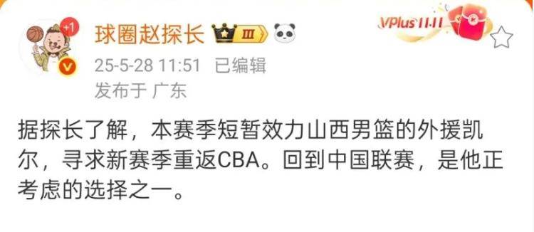 赛季结束后,凯尔离开山西男篮返回美国,不过这段短暂的CBA之旅给他留下了非常深刻的印象。据媒体人”球圈赵探长“透露,凯尔考虑新赛季继续留在CBA打球。按照CBA规则,每支球队最多只能只能对两名外援使用优先续约期,山西男篮基本上选择迪亚洛和古德温,这样凯尔就能够加盟任何球队了。而据广东媒体透露,由于在和广东男篮的比赛中的出色表现,凯尔也引起了朱芳雨和杜锋的关注。在球圈赵探长透露出凯尔想要继续在CBA打球的消息后,广东男篮就和凯尔的经纪人接触过,沟通过他加盟广东男篮的可能性。只不过由于休赛期才刚刚开始,凯尔是否会加盟广东男篮,还需要双方进一步交流。这样来看的话,凯尔已经成为了广东男篮外援方面的候选人之一,新赛季完全是有可能加盟广东男篮的。