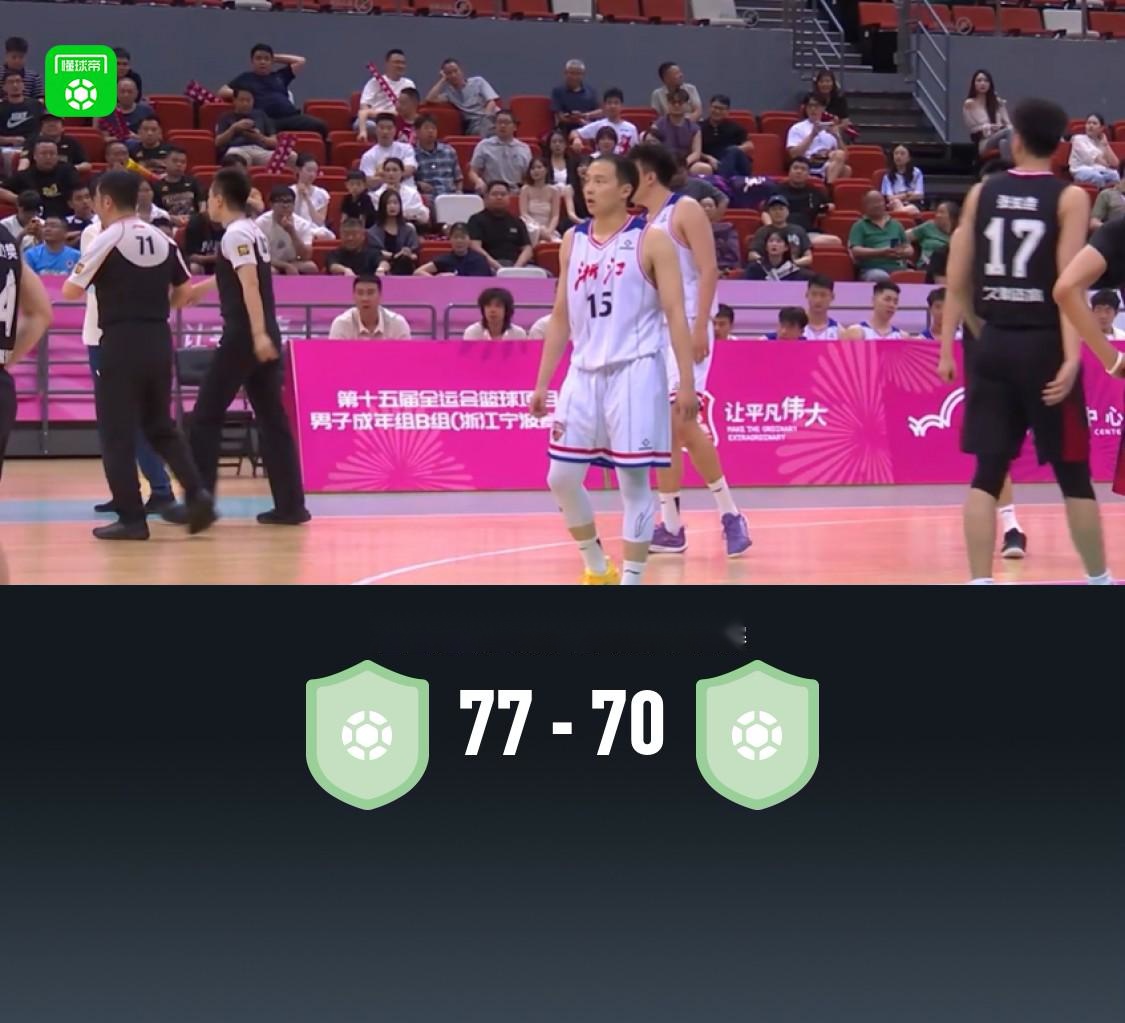 北京时间6月5日,全国运动会男子篮球赛 资格赛,浙江男篮对阵上海男篮。半场浙江男篮37-35领先上海男篮,最终浙江男篮77-70战胜上海男篮。