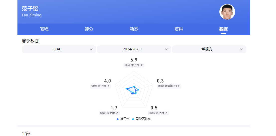 范子铭的数据说得过去,他高薪低能的问题主要体现在场上表现。范子铭的球商和终结效率不高,算是低配版六边形战士,啥都会两下,啥都不精通,只能打顺风球。