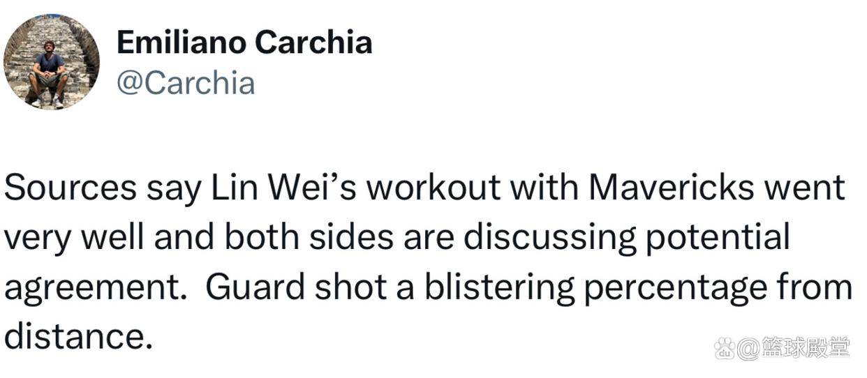 这种情况下,林葳已经获得了独行侠的认可,而且双方正在探讨签约的可能性,这是美国记者Emiliano Carchia透露的消息。如果签约的话,个人感觉很可能就是以训练营的合同出战夏季联赛,这其实已经足够了。毕竟林葳要想获得双向合同的难度非常大,如果获得一份训练营的合同,对于他也就满足了。