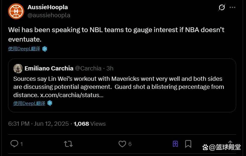 AussieHoopla在社交网站上表示:林葳一直与多家NBL球队进行接触,以评估若未能进入NBA时的备选意向。如果只是盯着NBA的话,对于他的发展肯定有局限性。而且NBL的实力与水平不差,特别是周琦加盟NBL之后,他在攻守的发挥都在获得实质性的蜕变。一旦林葳加盟NBL,至少在强对抗下,他是可以保持不错的命中率,这会是备受期待的一个结果,也算是林葳的一条后路吧,CBA的强度实在不行,能走出去就是好事。