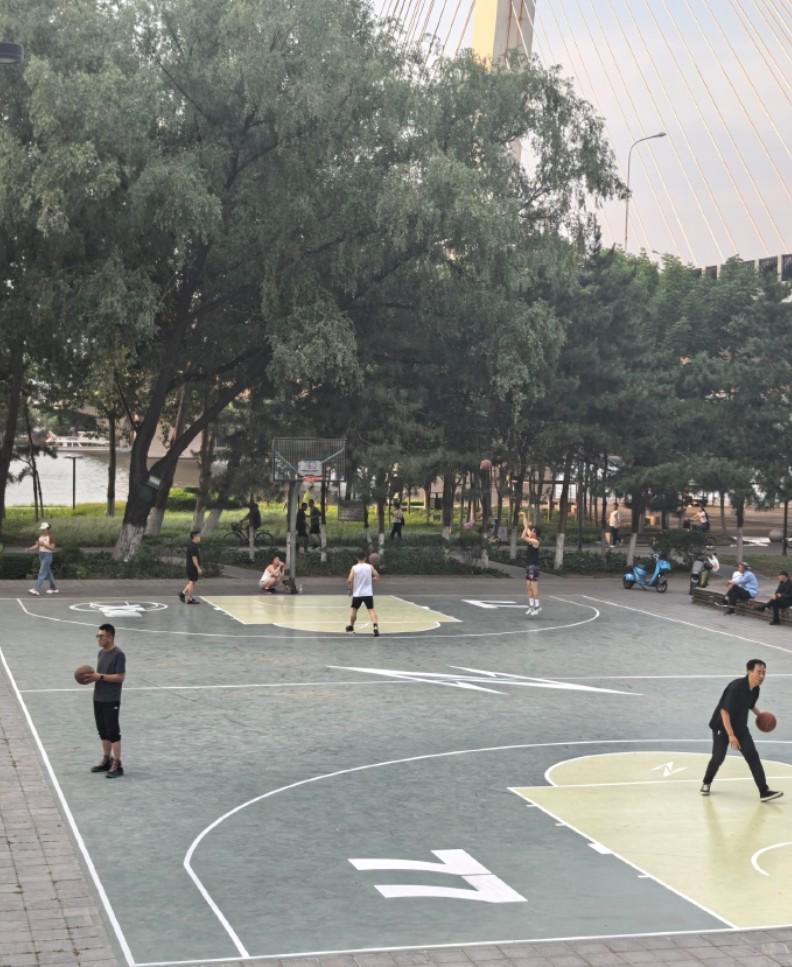 该篮球场的位置在沈阳市奥林匹克生态公园。从图片来看,球场上印有张镇麟的球衣号码“77”以及姓氏字母缩写“Z”。