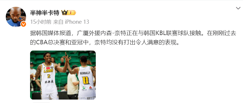 很显然,在看到奈特的作用后,韩国联赛已经盯上这个CBA总冠军功勋外援了。据悉,韩国联赛目前已经有球队给奈特伸出橄榄枝了,双方也正在接触中。对于韩国联赛而言,奈特确实是一个不错的选择,他合适小球战术,而且,在对抗上也不差,这些都非常符合他们联赛的特点。所以,一旦奈特选择加盟韩国联赛的话,他大概率会成为韩国联赛的香饽饽。那么,广厦本赛季四大外援组合,真的会解体吗?