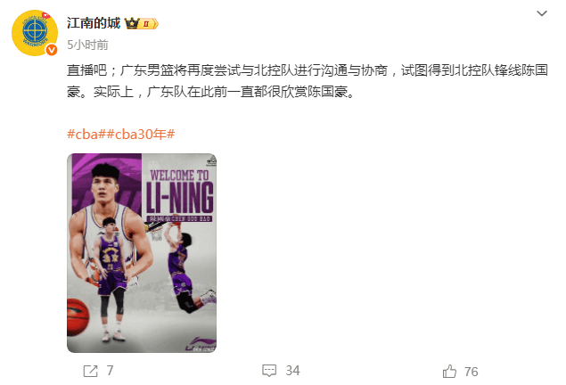 据知名篮球记者江南的城爆料,广东宏远仍在尝试报价北控男篮前锋陈国豪,陈国豪今夏虽说与北控男篮的合同已到期,但北控男篮拥有陈国豪A2合同的匹配权,无论任何CBA球队给陈国豪报价,北控男篮都会选择先匹配,而后再选择是否与陈国豪下家做交易,不会在没有得到任何筹码的情况下便放走陈国豪这个优质资源。