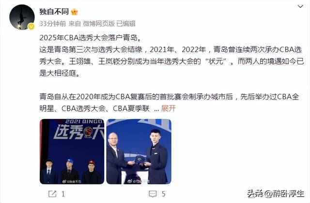 如今根据青岛男篮记者杜金城报道:“2025年CBA选秀大会落户青岛,这是青岛第三次与选秀大会结缘,2021年与2022年青岛曾连续两次承办CBA选秀大会。王翊雄、王岚嵚分别成为当年选秀大会的状元,两人的境遇如今已是大相径庭。”