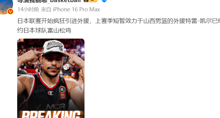 曾在CBA季后赛中率队淘汰广东队的“克星”凯尔,如今正式告别中国赛场——他已与日本联赛球队完成签约,下赛季将转战海外。这一变动对志在冲冠的山西队而言,无疑是不小的打击,球队下赛季冲击冠军的难度也因此陡然增加。