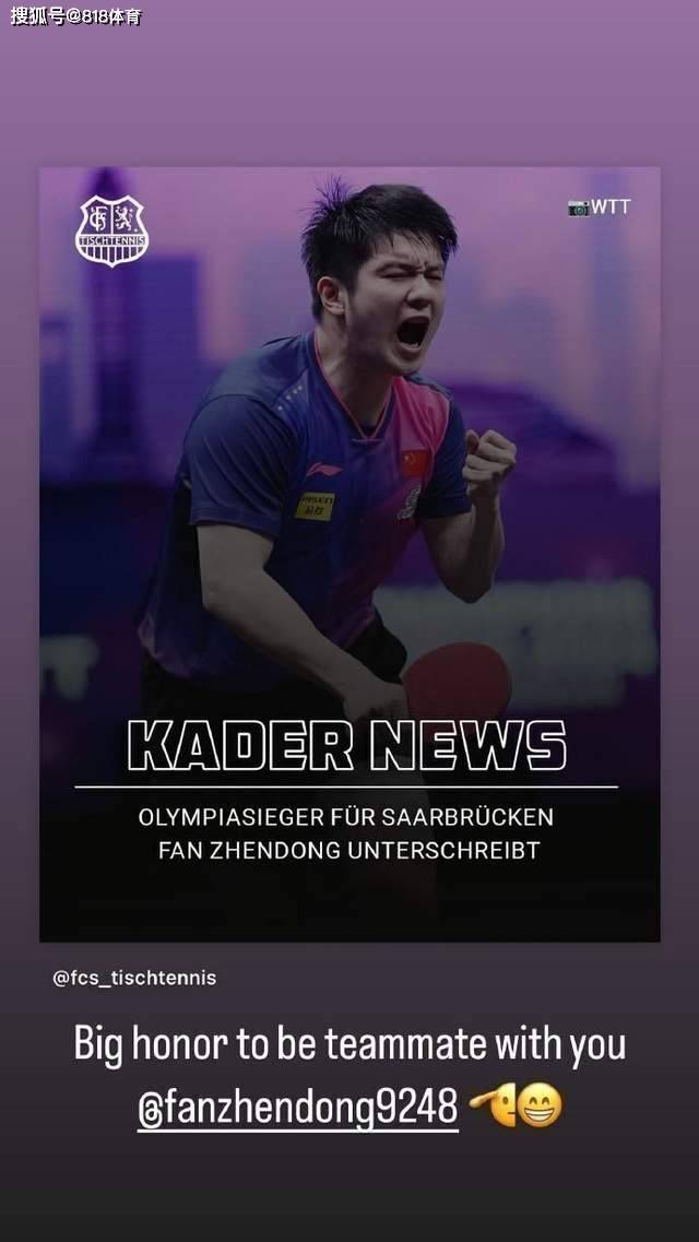 “期待樊振东与萨尔布吕肯一起出发,为大家呈现更多精彩的比赛”