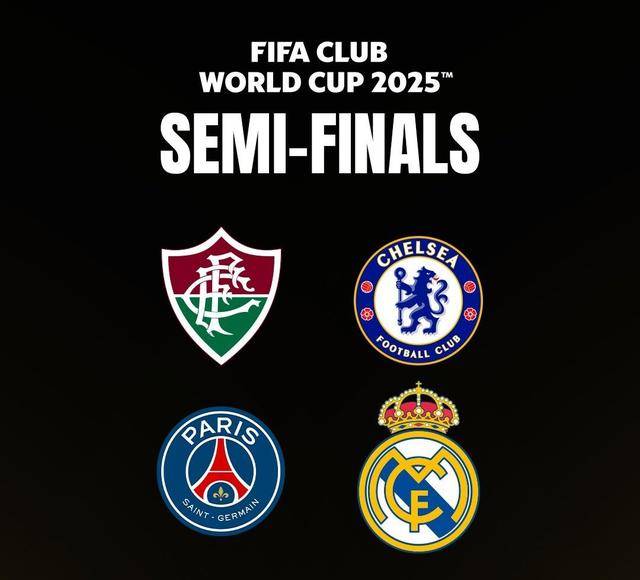 至此,2025世俱杯4强球队及半决赛对阵成功出炉。北京时间7月9日3点,弗鲁米嫩塞VS切尔西!北京时间7月10日3点,巴黎圣日耳曼VS皇家马德里!