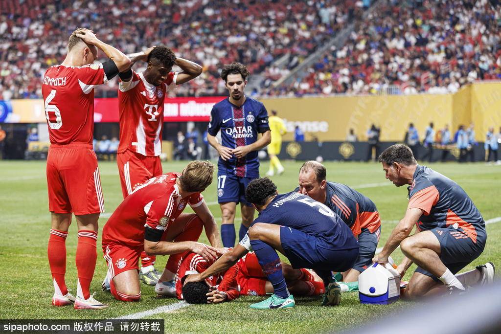 2025世俱杯1/4决赛,拜仁0-2遭巴黎圣日耳曼淘汰。在上半场补时阶段,穆西亚拉与出击的巴黎门将多纳鲁马撞在一起,脚踝严重变形,随后被担架抬下场。