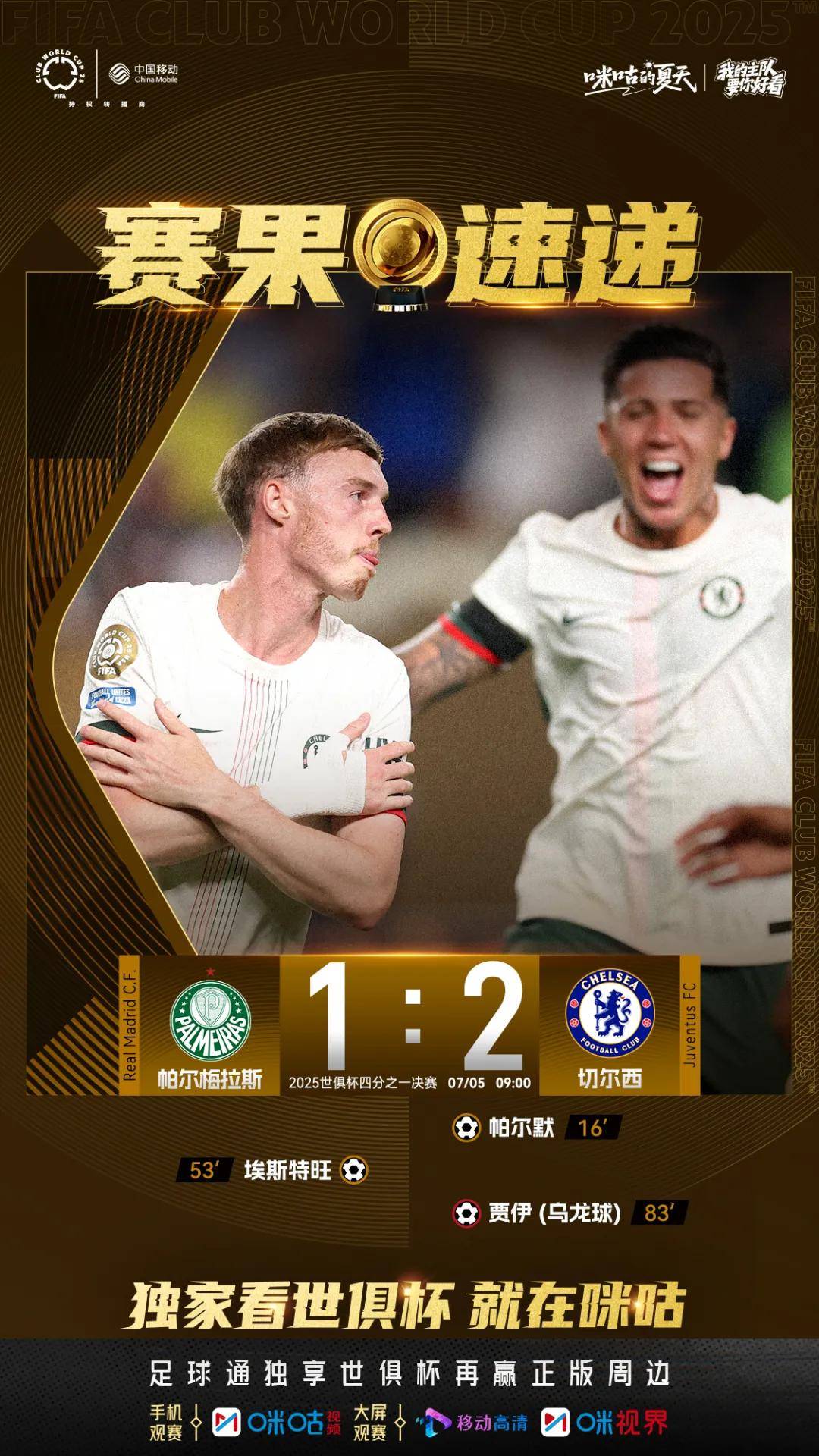 7月5日上午9点,切尔西2-1战胜帕尔梅拉斯。上半场第16分钟,帕尔默接查洛巴传球,突入禁区低射破门,收获个人世俱杯的首球。