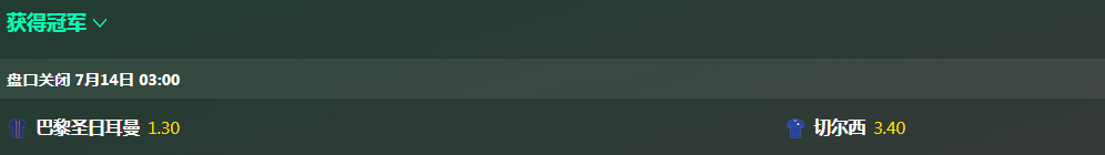 机构对于表现非常强势的巴黎,给到了仅有1.3的期望,从期望值来看,巴黎非常有希望夺冠。除了进去决赛的两队都有3000w的奖金,捧杯者还有1000w的夺冠奖金,但两队在世俱杯总计获得高达1.25亿美元的奖金。冠军不仅能带走奖金和奖杯,还有一枚纪念徽章,与常规世界杯冠军获得的额外五星徽章类似,将在未来四年内佩戴在周日的冠军球衣上。