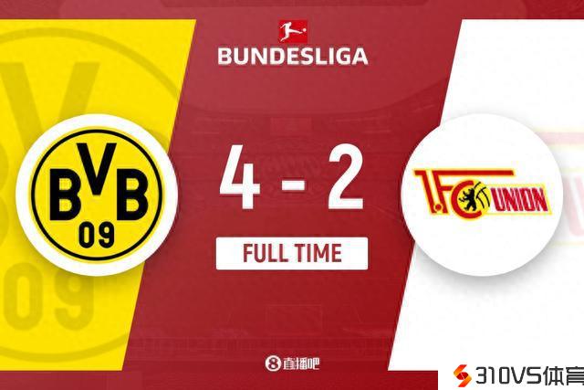 全场竞赛完毕,多特蒙德4-2柏林结合。