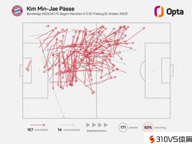 据OPTA统计,金玟哉本场竞赛传球171次,这也发明了德甲自2019年2月以来的单场传球次数纪录。