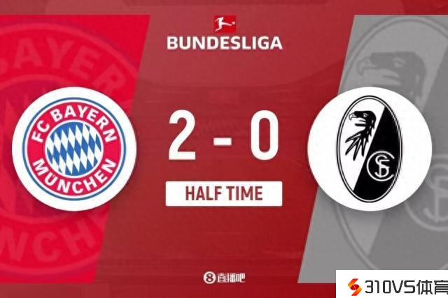 上半场伤停补时3分钟,半场完毕,拜仁暂2-0弗赖堡。