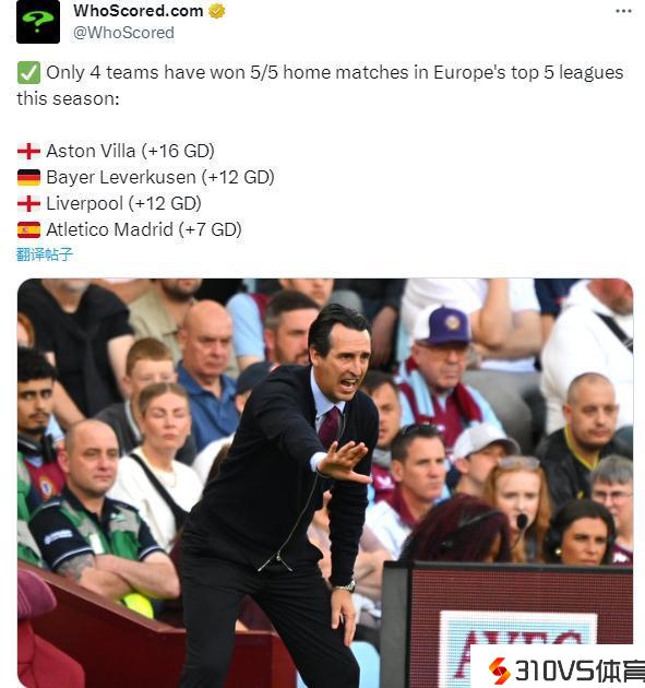 据WhoScored数据机构统计,目前在本赛季的五大联赛中,仅有四支球队还坚持主场全胜的战绩。