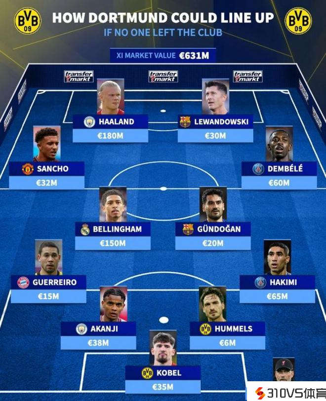 昔日多特蒙德掀起的一股青春风暴依然令人印象深入,如今各奔东西之后少数球员都已兑现天赋,德转也清点了若多特无人转会如今可以排出的阵容,详细如下: