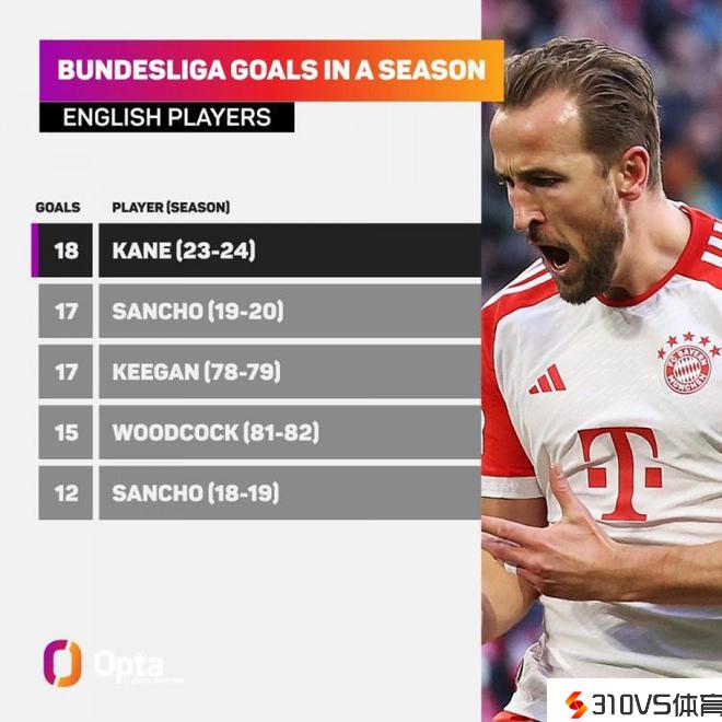 据Opta统计,仰仗这粒进球,凯恩成为德甲历史第一位在前12轮打进18球的球员,也是首位在一个德甲赛季里打进18粒进球的英格兰球员。