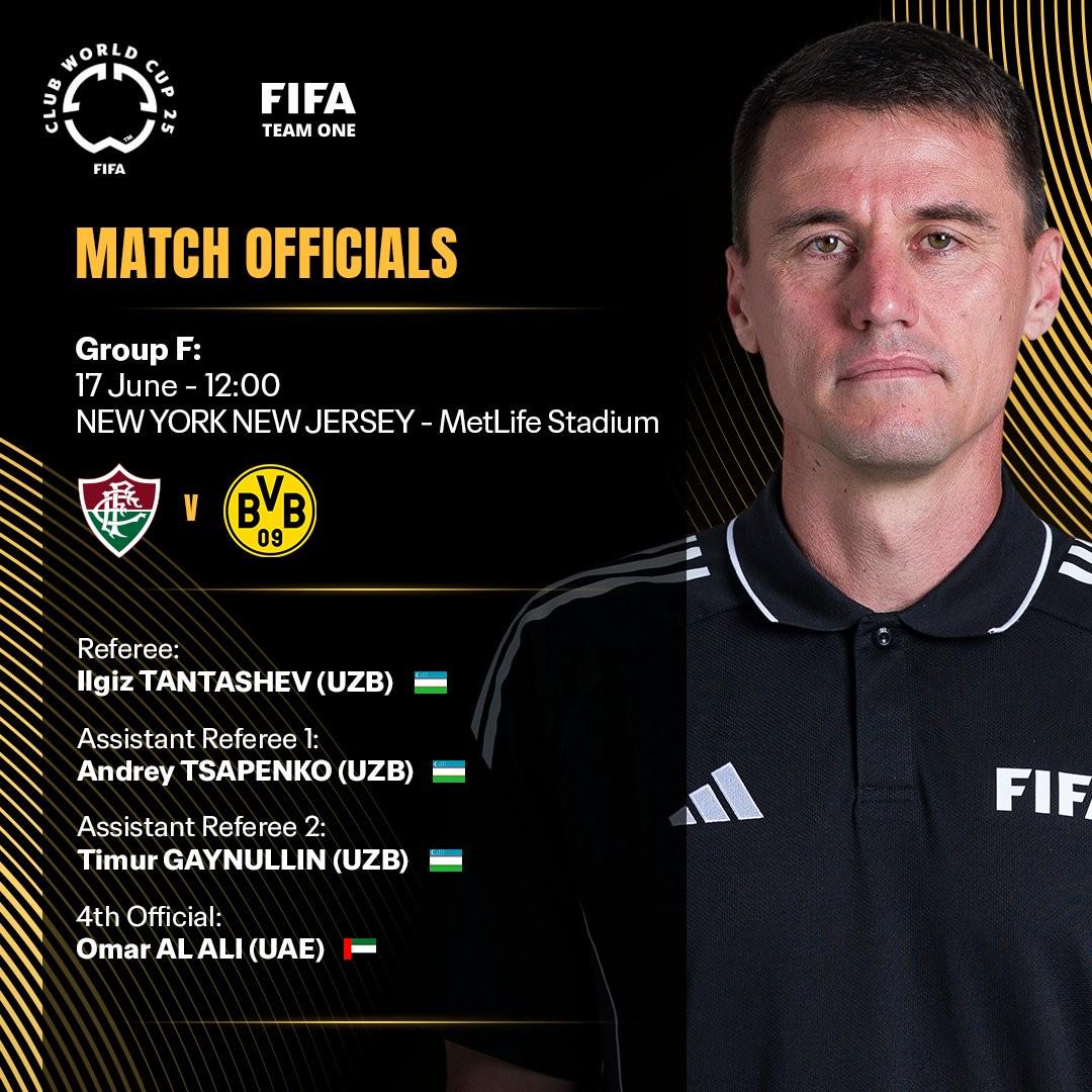 官方消息,乌兹别克斯坦裁判坦塔舍夫将执法世俱杯小组赛弗鲁米嫩塞vs多特蒙德。