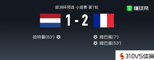北京时间10月14日荷兰vs法国,姆巴佩失掉全场最高的9.0分,迈尼昂失掉全场最低的6.1分