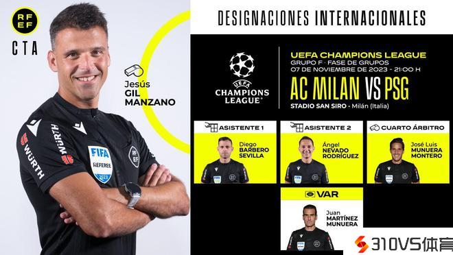 希尔-曼萨诺执法过本赛季欧冠小组赛巴黎主场2-0击败多特的竞赛。这位39岁的西班牙裁判曾执法过4场米兰的竞赛,战绩为2胜1平1负,最近一次是上赛季欧冠半决赛首回合米兰德比,米兰0-2告负。