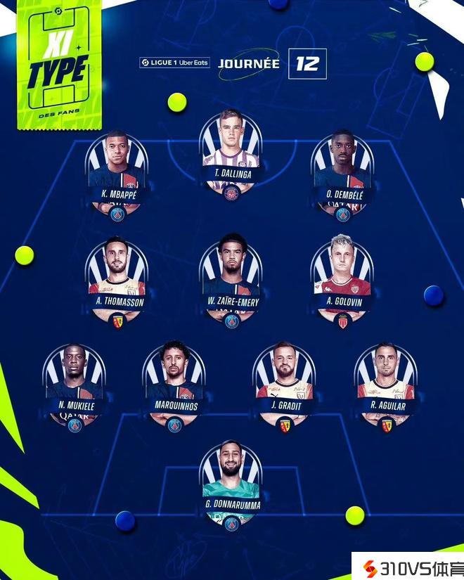 法甲第12轮最佳阵容: