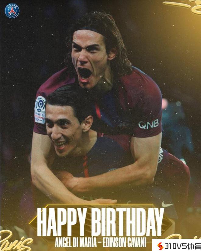 巴黎圣日耳曼在其官方社交媒体上这样写道:“祝2位伟大的球员生日快乐:36岁的迪马利亚和37岁的卡瓦尼。”