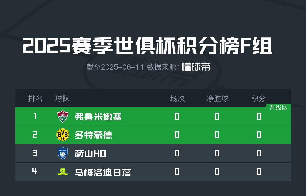 刚刚签下小贝林的多特蒙德,将力争夺得小组第一。巴西球队弗鲁米嫩塞作为2023年南美解放者杯冠军,进攻能力出色。韩国劲旅蔚山HD与南非超冠军马梅洛迪日落,将代表本国在F组中力争出线。