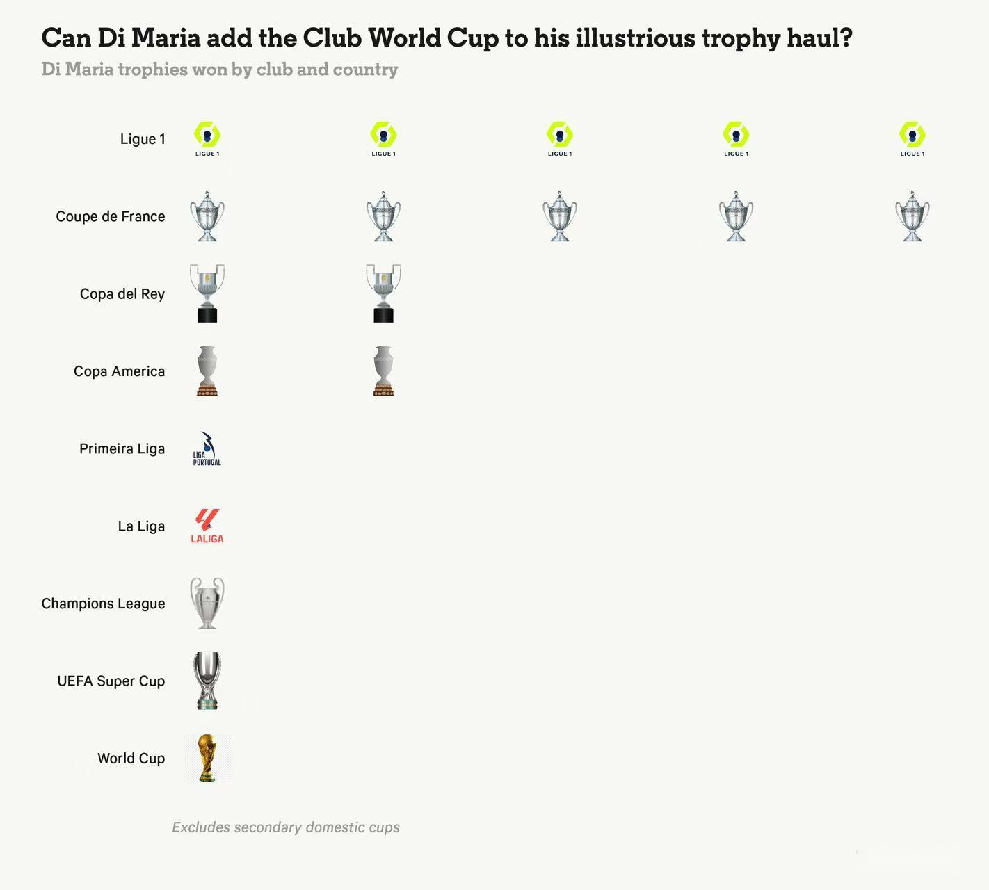 此前,罗萨里奥中央官方宣布,迪马利亚自由转会回归球队。在随本菲卡结束世俱杯征程后,这名阿根廷边锋就将正式落叶归根,回归母队。The Athletic发文回顾了这位传奇球员的职业生涯。