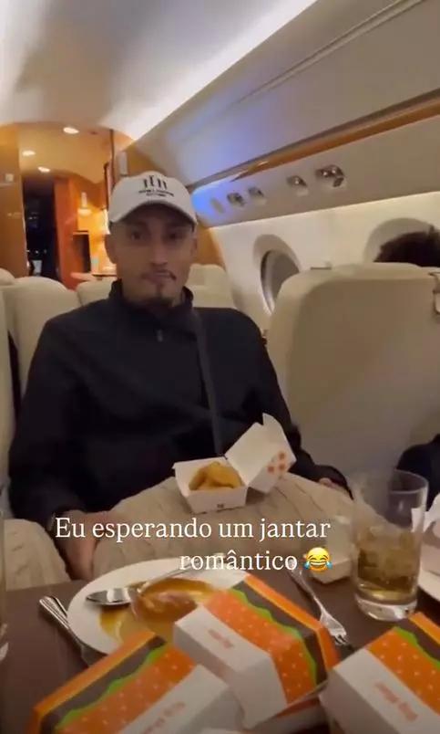 巴塞罗那球星拉菲尼亚社媒发布与妻子娜塔莉亚在巴西共度6月12日的情人节,但他们的庆祝方式却格外特别——在私人飞机上吃麦当劳巨无霸汉堡,引发社交媒体热议。
