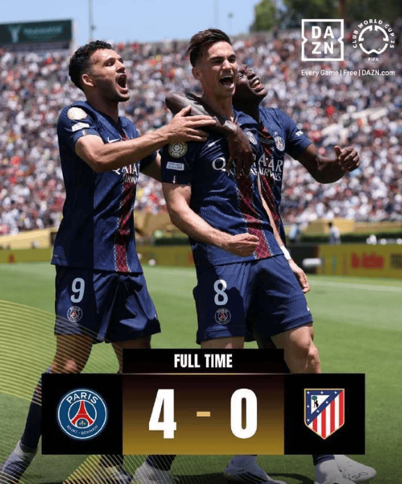 6月16日、世俱杯小组赛、巴黎 4-0 马竞