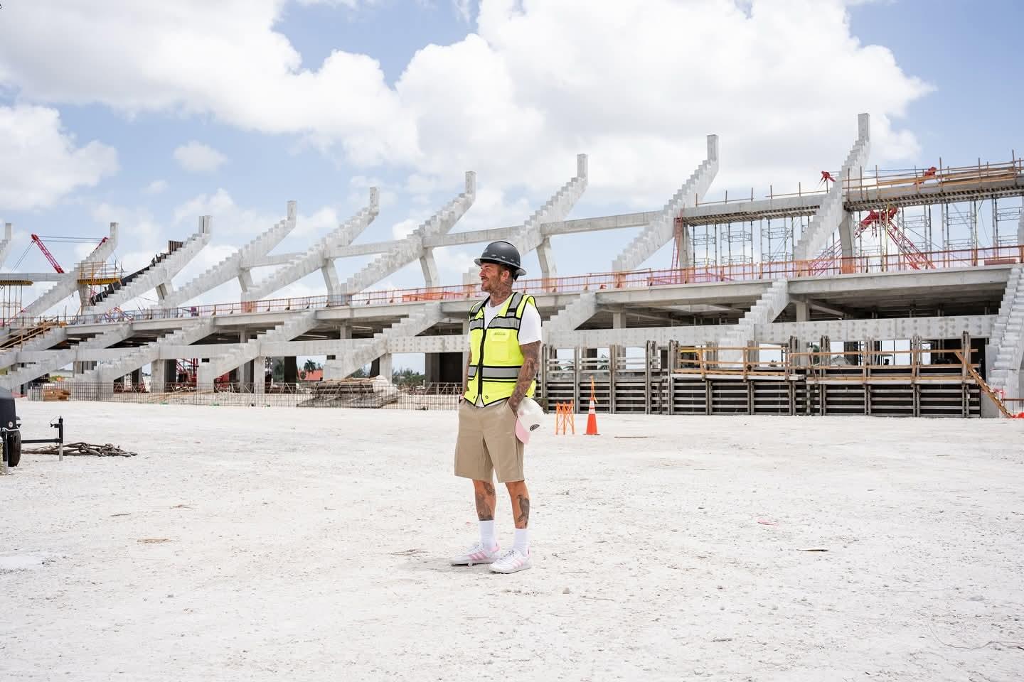 迈阿密国际主席贝克汉姆分享了迈阿密国际新主场的建设的一些照片,据悉该球场计划于2026年开放。