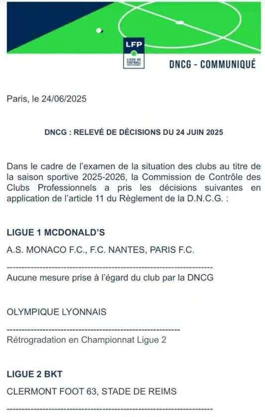 然而,里昂的债务一直是一个大问题。根据多方消息,在特克托的领导下,里昂的债务不降反增,目前已达到50亿欧元。这样的财务状况导致法国职业俱乐部财政监管委员会出手,摩纳哥、南特、巴黎FC以及法乙的克莱蒙63、兰斯成功逃脱,唯独里昂倒霉,降级至法乙。