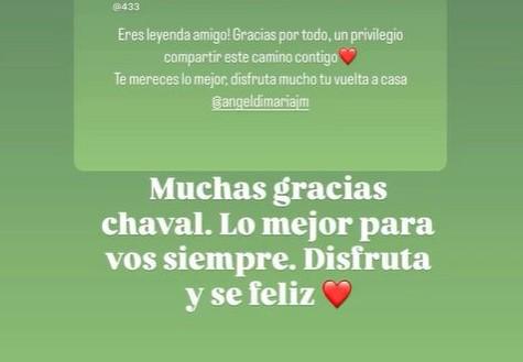 迪马利亚也回应道:“ 谢谢你,孩子,我永远祝福你一切顺利,好好享受并且幸福快乐。 ”