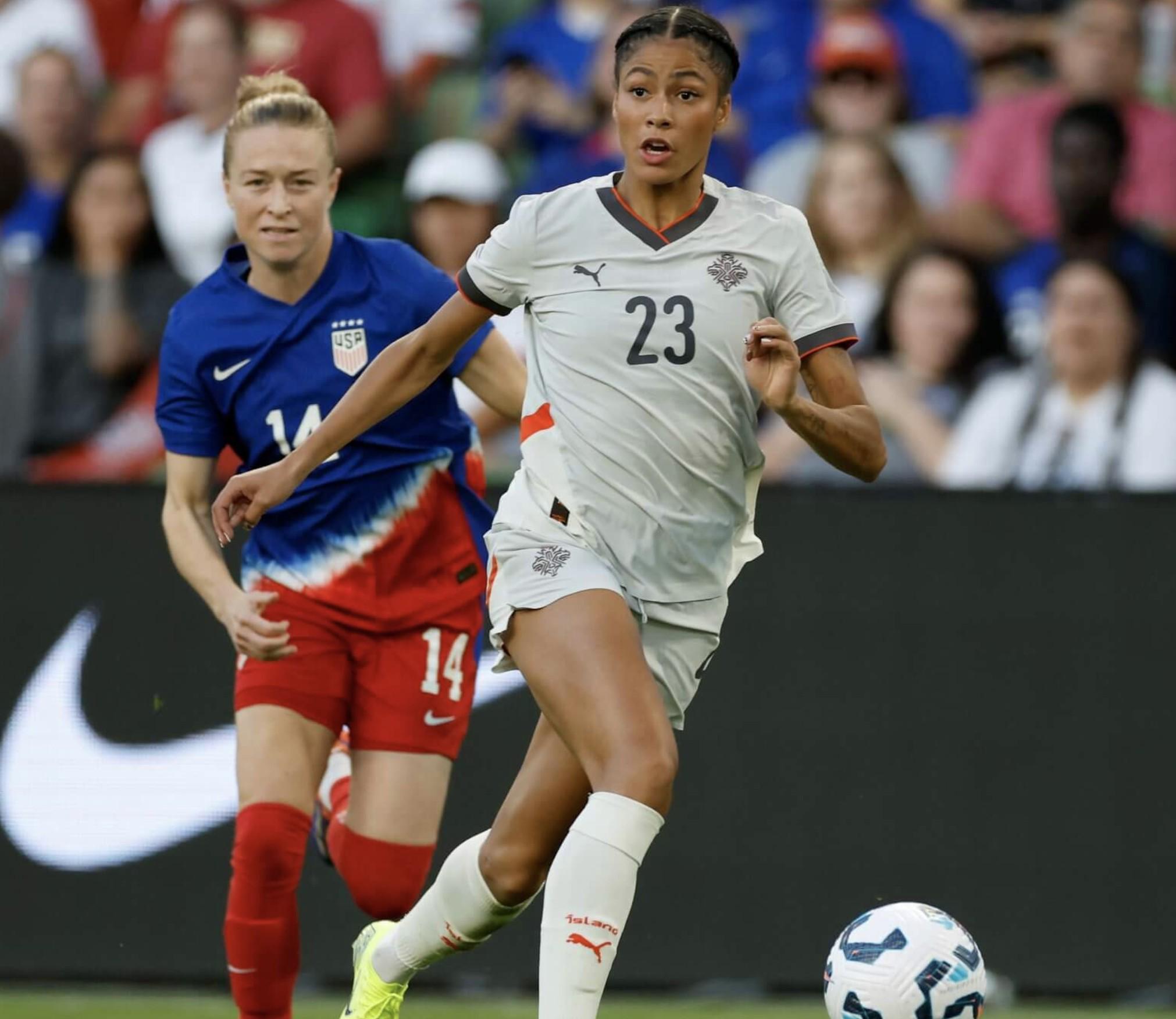 前锋斯 约恩斯多蒂尔 于上个月签约美国女子联赛的天使城足球俱乐部,合同至2027年。现年24岁的她此前效力于德国沃尔夫斯堡,在四个赛季的93场比赛中打入22球并贡献16次助攻。沃尔夫斯堡曾在2023年打入女足欧冠决赛,最终以2-3不敌巴塞罗那。