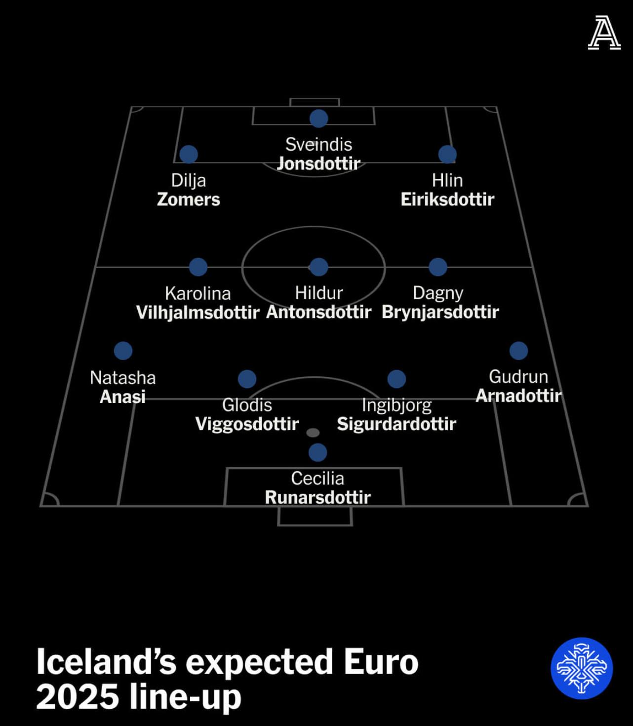 冰岛与瑞士、芬兰和挪威同处 A 组。她们是该组中排名最高的球队,但需面对东道主瑞士以及挪威,两队拥有更多的明星球员。芬兰可能是她们最有机会赢下的对手。击败芬兰看起来很可能,与挪威打平是现实目标,争取对瑞士制造冷门也是可能的。