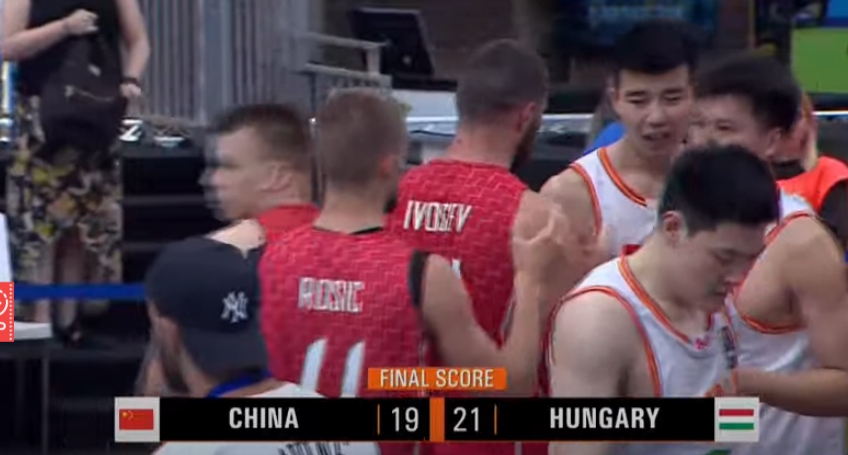 一开场,中国男篮内外开花3-0领先,匈牙利强攻内线连中三球强势追平,陈江河再中外线两分,匈牙利继续冲击篮筐频频得手,双方打得非常激烈,比分交替领先。匈牙利凭借篮板优势占据场上主动,张宁挺身而出连得4分顽强咬住。双方争夺陷入白热化,关键时刻匈牙利连续造成杀伤,两队各自飙中远投两分,匈牙利偷袭篮下得手锁定胜局。最终,中国男篮19-21惜败匈牙利,无缘男篮世界杯正赛。