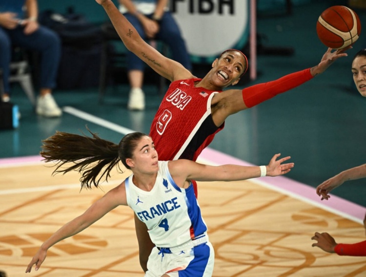 比赛上来,美国队连拿四分取得领先,不过法国队迅速用一波5-0的小高潮实现反超,但之后她们的进攻表现糟糕,单节只拿到9分,美国队则是拿到15分,次节美国队的命中率也是出现下滑,法国队抓住机会在半场结束时追至25-25平;下半场回来,在前三分多钟的时间里美国队一分未得,法国队打出一波10-0的小高潮将分差拉开到了两位数,紧要关头美国队连拿八分追上比分,之后两队一直保持拉锯,比赛直到最后才分出胜负,关键时刻法国队连续两个三不沾,库珀两罚全中最终美国队险胜法国队拿下金牌,也是实现了奥运会八连冠。