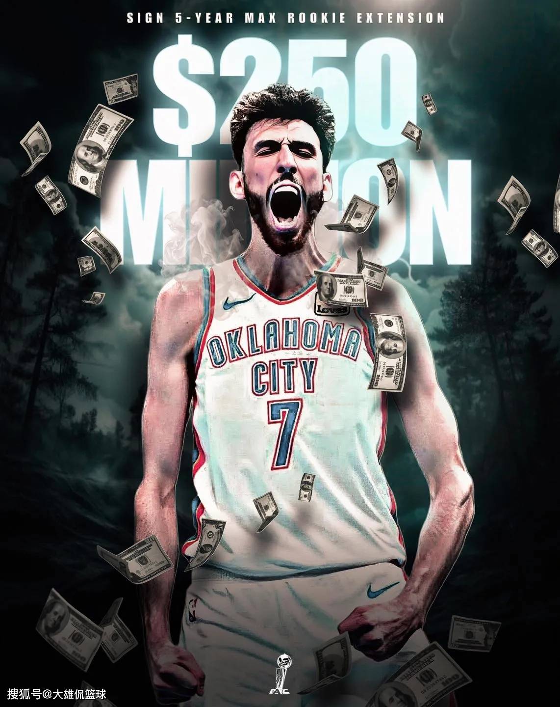 雷霆对于一些出色有天赋的年轻球员,也是非常豪爽,直接给予一份不错的顶薪大合同。比如26岁的亚历山大,这个赛季常规赛和季后赛的表现,都非常出色,还获得了常规赛MVP,总决赛MVP,他为雷霆队带来了球队历史上的第一个总冠军。