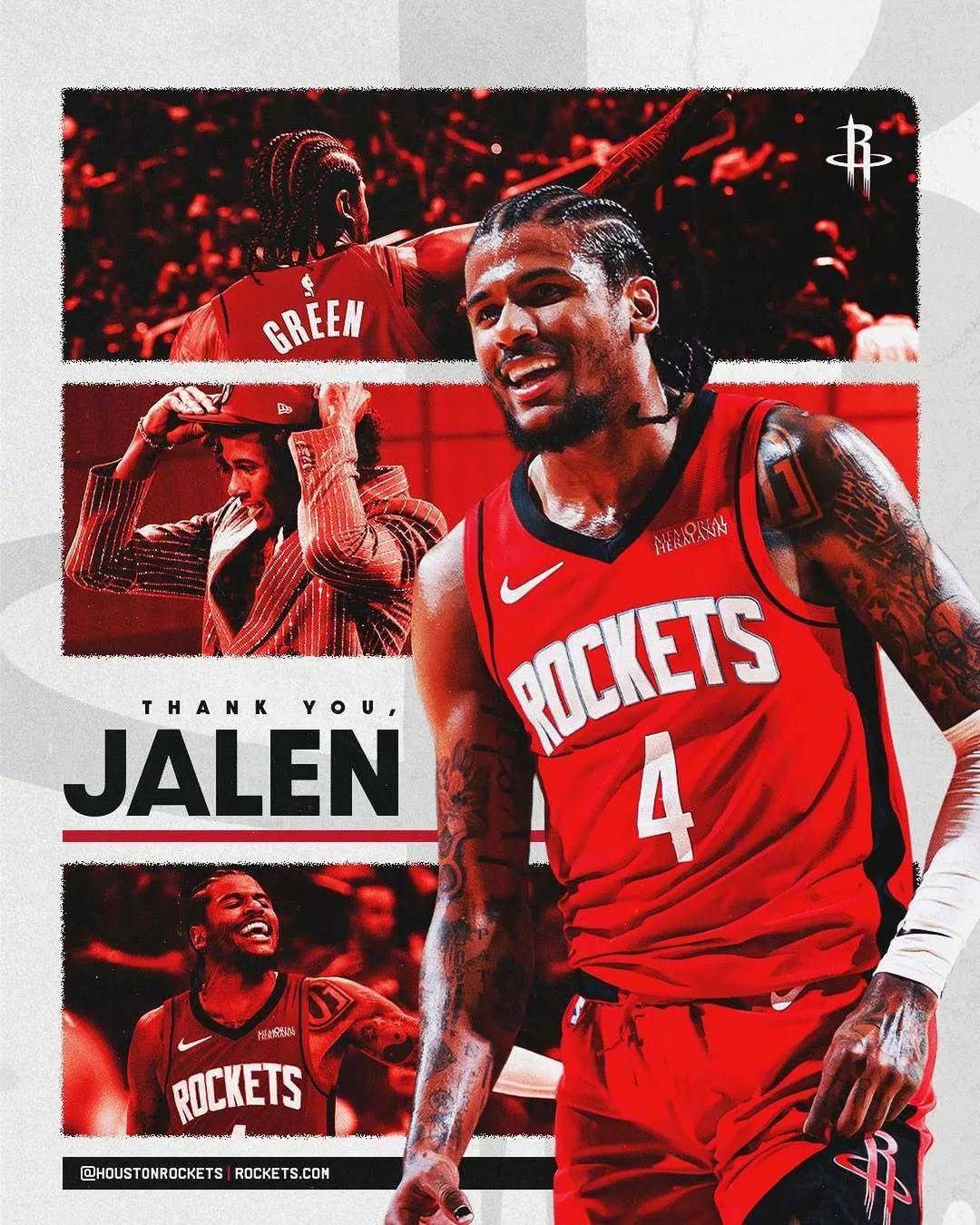 火箭总经理斯通说道:“杰伦-格林过去四年的篮球之旅,对火箭的发展起到了重要作用。杰伦-格林是个很棒的人,他在场上完成了我们要求的一切。他在场下跟队友、教练相处融洽,这是火箭球队文化的重要组成部分。”