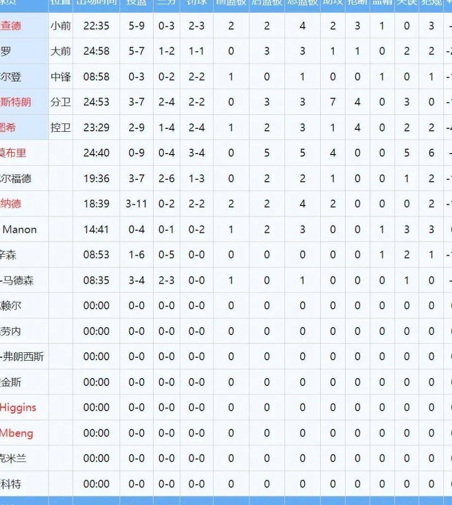 首节杨瀚森打了6分35秒,投篮1中0,不过有1板2助1盖帽,正负值高达+19。次节他表现更出色,高位持球强攻,顶开打莫布里打板命中,拿下夏联首分。之后他进攻和组织都有精彩发挥。半场结束,他出战14分钟,3中2,三分2中1,4罚3中,有8分2板2助2帽2失误4犯规,正负值+14。