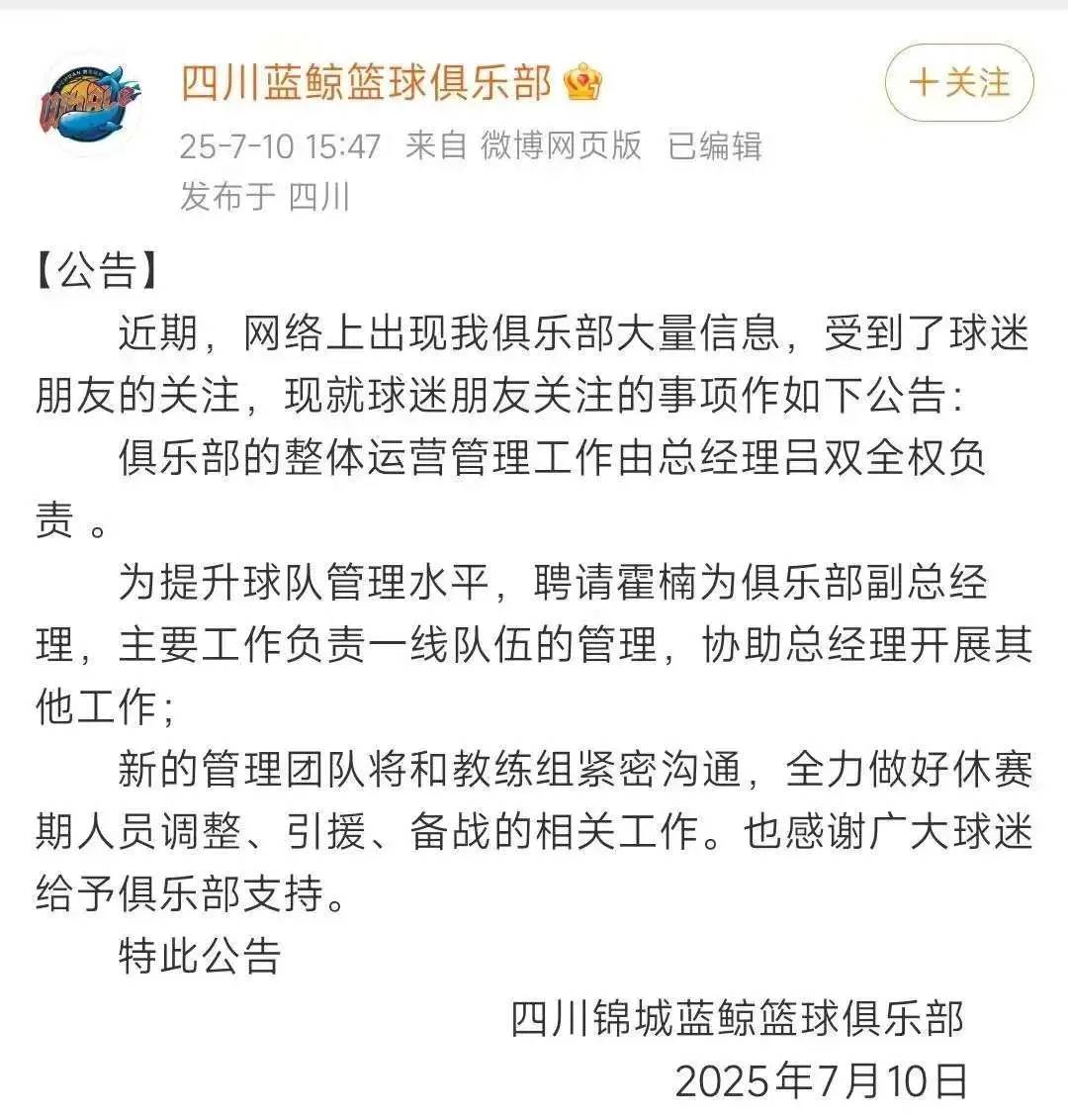 在福建浔兴得到充分锻炼的邹阳不仅入选了国家队,还被标价8000万,而方佳晨在与四川金强合同到期后,四川金强连续约的想法都没有,直接让方佳晨自行寻找下家,也不会在培养费方面为难,这也是四川金强为何近期更换管理层的根源所在。不过当年看不上邹阳的吕双居然取代耿洁当了总经理,而被球迷认为是四川金强救星的霍楠居然只是副总,还要协助吕双工作,四川球迷觉得刚亮的天又暗了。