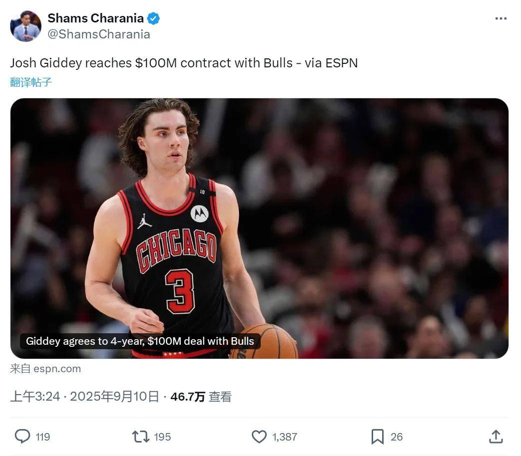 北京时间9月10日凌晨,据NBA名记Shams报道,约什-吉迪与公牛队签下4年1亿美元的续约合同。吉迪、卡梅伦-托马斯、库明加和格莱姆斯,这四个人原本都在耗着。结果托马斯接受1年600万资质报价,吉迪如愿以偿拿到大合同。