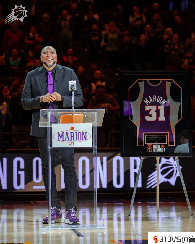 看到31号球衣挂在球馆上空,马里昂的家人泪流满面。多位太阳名宿到场:纳什、巴博萨、科特-托马斯、丹-马尔利等。还有前太阳老板克朗吉洛、前太阳主帅德安东尼和金特里。连小牛名宿诺维茨基也来了,骇主人缘真不错。