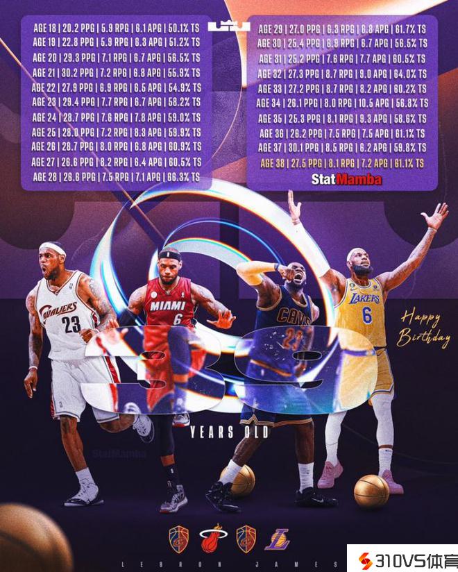 > 见证伟大!美媒晒老詹历年数据:再也不会有第二个勒布朗了!