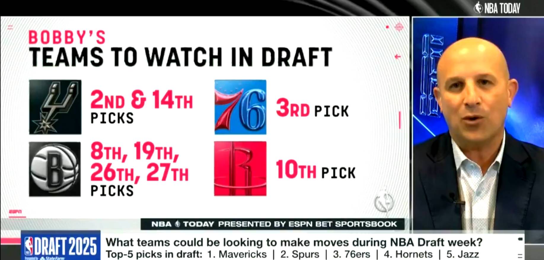 随着选秀大会的脚步日益临近,多支坐拥乐透签的球队已然按捺不住内心的躁动,开始暗自谋划。据ESPN的知名薪资专家Bobby Marks于《NBA Today》节目中披露:在今年,我们将会目睹更多的首轮选秀权交易。对于如此反常的举动,还是引起不小的关注。多位潜力新人选择退出选秀、乐透抽签背后疑似存在的黑幕,再加上新秀成才率不尽如人意,这些皆成为了关键的限制因素。在种种不利因素的影响下,各支球队纷纷选择抛售相关选秀资源的做法,也是无可厚非的事实。