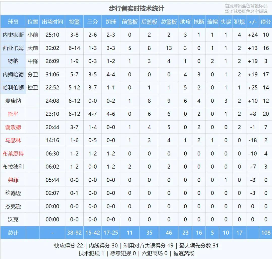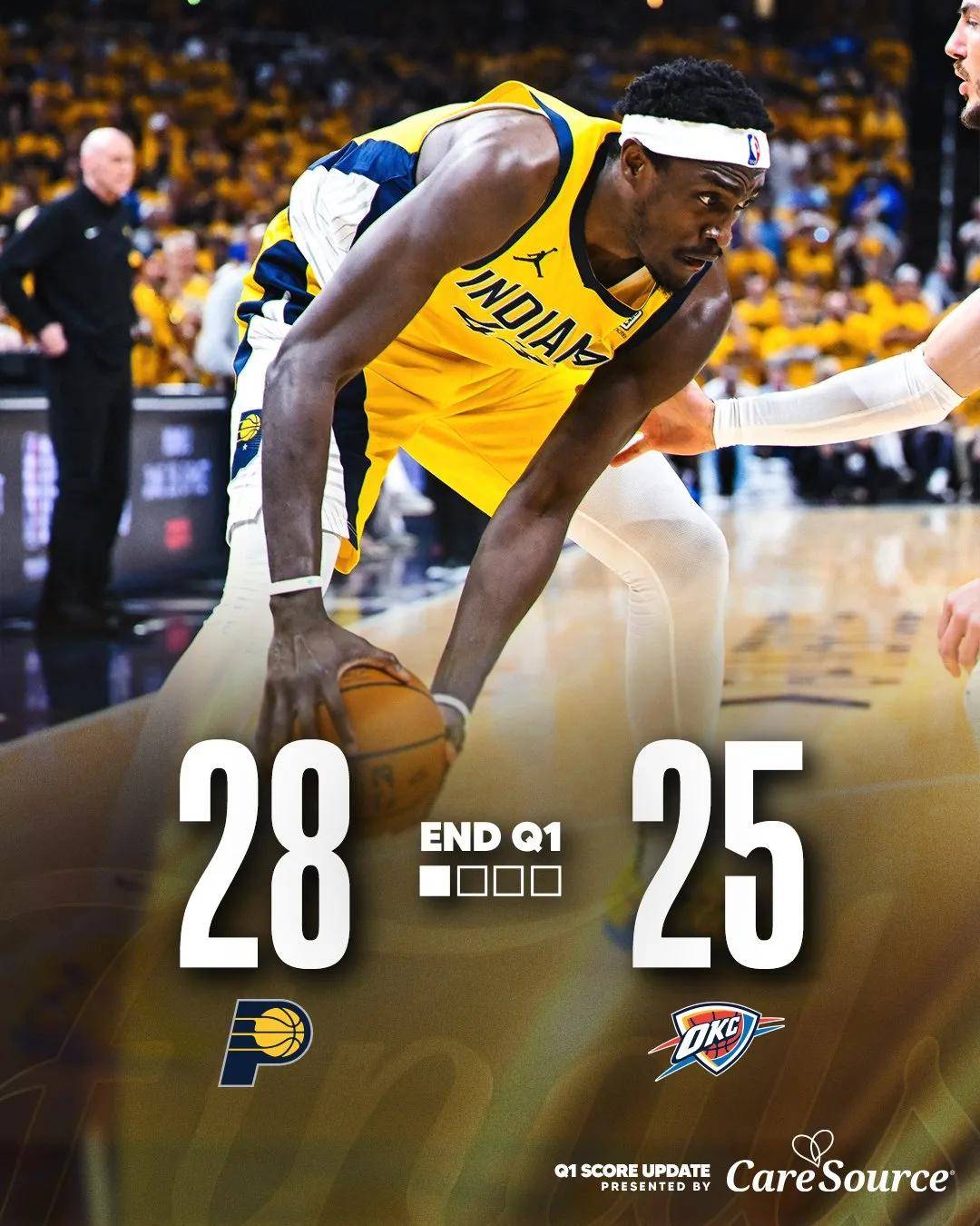 第一节打完,步行者28-25领先3分。哈利伯顿受到腿伤影响,首节5中1仅得4分1助攻。雷霆的问题是外线太铁,首节三分球6中1,两分球15中10。第二节雷霆追到1分,麦康奈尔连砍8分,步行者再次拉开,替补得分碾压雷霆!