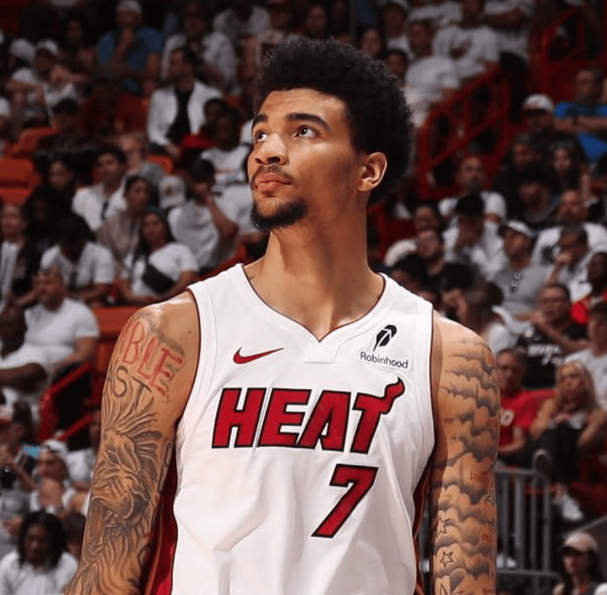 这个克莱尔·韦尔只有21岁,身高213公分,是热火去年在首轮第15顺位选中的潜力新星,新秀年场均9.3分7.4篮板1.1封盖,能有31.5%的三分球命中率,被成为“迈阿密小文班亚马”。
